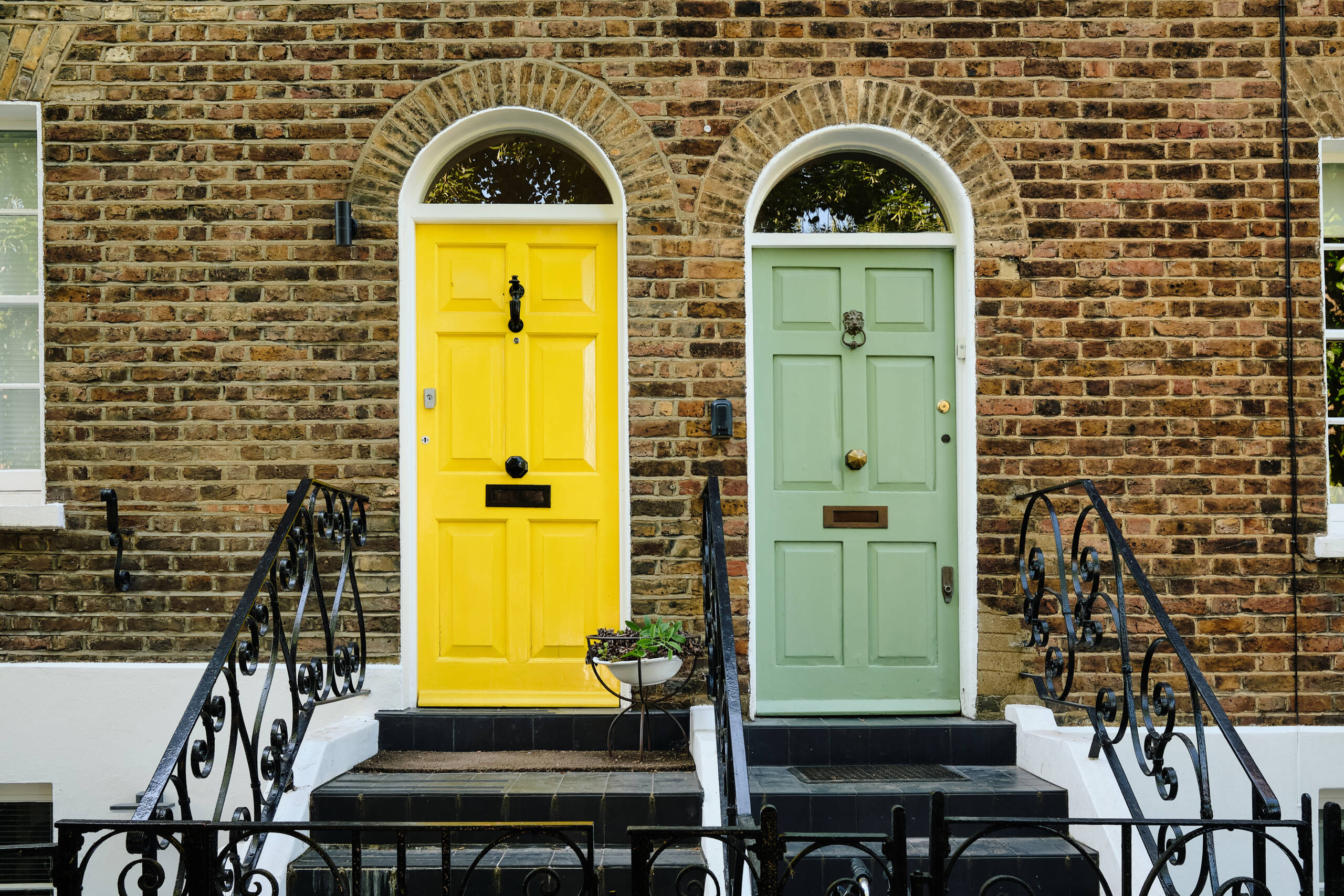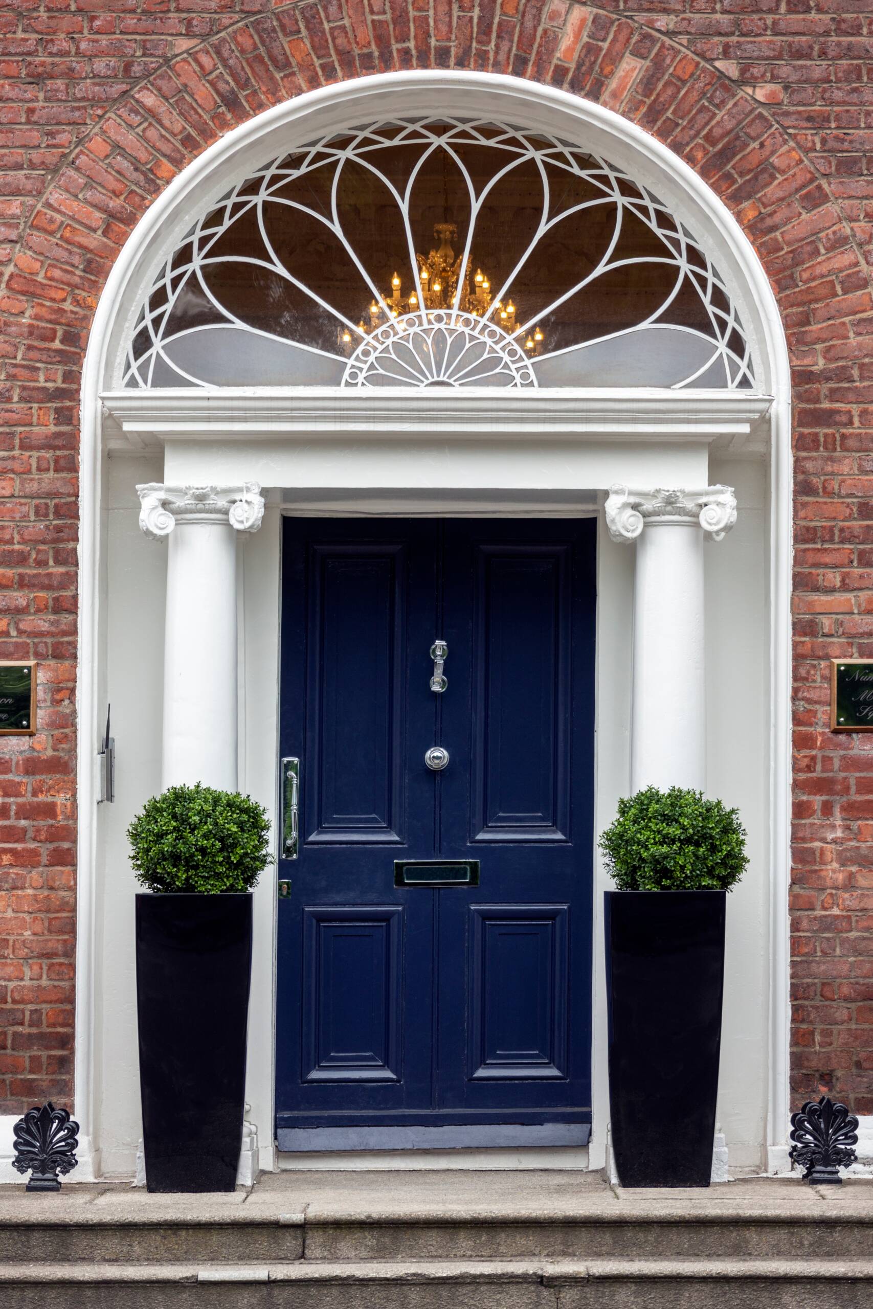 - Hardware: pull bars, Victorian knockers and classic lever handles.